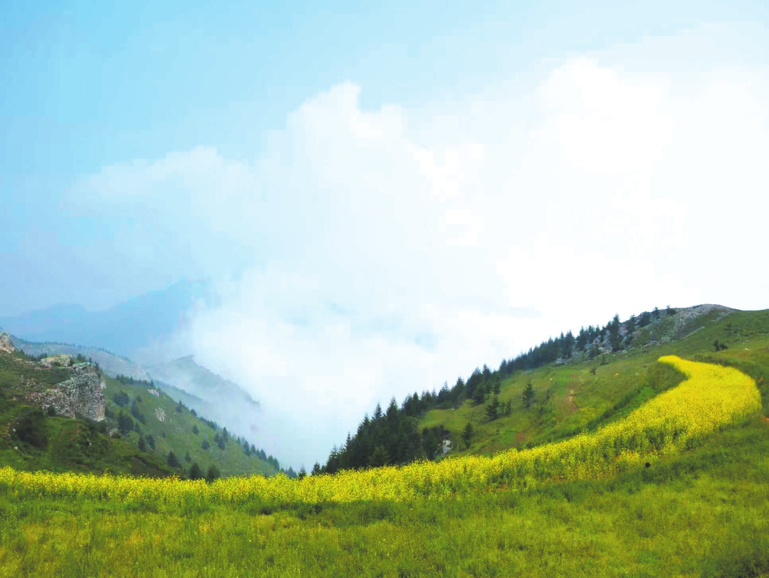 站立在山崖邊,面對萬頃云海,清爽的高山氣息在肌膚上輕輕拂過,從山下帶上來的那種燥熱漸漸消退,有人禁不住放開喉嚨高聲吶喊:“哎——”
