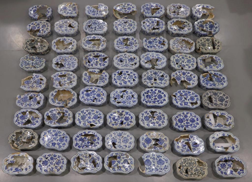 新華社南昌1月25日電題:明代“空白期”青花瓷枕的重生 新華社記者袁慧晶 位于江西的景德鎮(zhèn)御窯博物館內(nèi)有一面“網(wǎng)紅墻”,展示了65件明代“空白期”青花瓷枕的修復(fù)件。這些瓷枕曾以碎片的形態(tài)深埋地下十余米數(shù)百年,又在文物修復(fù)師手中重獲新生,成為研究“空白期”官窯瓷器的重要實(shí)物依據(jù)。 史料記載,從明代永樂年間開始,官窯瓷器上便有落帝王年號款的傳統(tǒng)。然而,十五世紀(jì)中期,即明代的正統(tǒng)、景泰、天順時(shí)期,帝位更迭頻繁,鮮見有明確紀(jì)年的陶瓷器物。由于不書年款,史料記載又語焉不詳,這三朝的官窯瓷器面貌模糊不清,這段時(shí)期被稱為中國陶瓷史上的“空白期”。學(xué)界曾一度以為,這一時(shí)期沒有生產(chǎn)官窯瓷器。 2014年,考古工作人員在景德鎮(zhèn)珠山區(qū)御窯廠北麓保護(hù)工程中發(fā)現(xiàn)了厚度約為50至80厘米的“空白期”地層?!皬脑摰貙映鐾?、清理出來的瓷片數(shù)以萬計(jì),除瓷枕之外還有其他器形,僅把這些屬于瓷枕的異形殘片分辨出來,我們都用了很長時(shí)間?!睍r(shí)任景德鎮(zhèn)市陶瓷考古研究所所長的江建新告訴記者,這批瓷枕在拼對修復(fù)之前,必須經(jīng)過全面的考古整理。 此后,景德鎮(zhèn)御窯博物院運(yùn)用“多級分類、系列復(fù)原”等修復(fù)方法,于2021年成功拼對修復(fù)出116件青花如意頭形枕。同類型的瓷枕未見于北京故宮博物院等其他主要博物館。