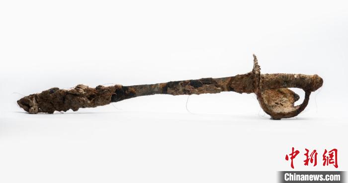 “來遠(yuǎn)”艦遺址出水的海軍軍刀。山東省水下考古研究中心供圖