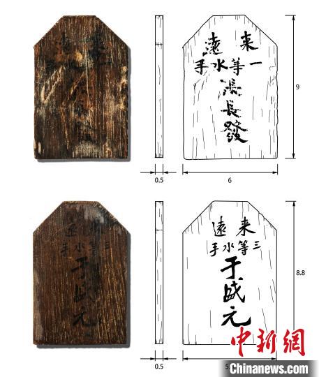 "來遠(yuǎn)"艦遺址發(fā)掘出水兩塊水手身份木牌。山東省水下考古研究中心供圖