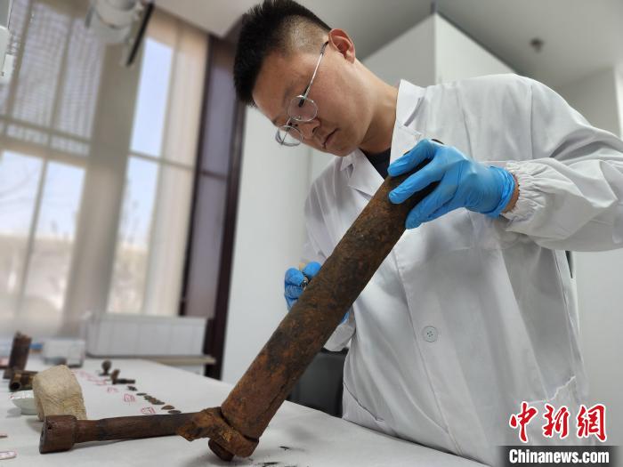 資料圖:文物修復(fù)師用刻刀剔除一件船構(gòu)件表面的銹蝕物。 趙曉 攝