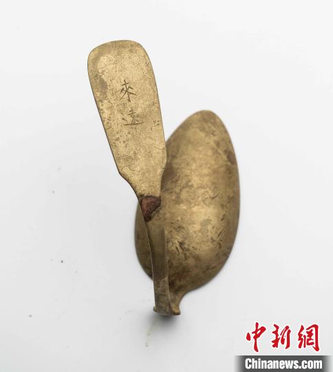 刻有“來遠(yuǎn)”字樣的鍍銀湯勺。山東省水下考古研究中心供圖