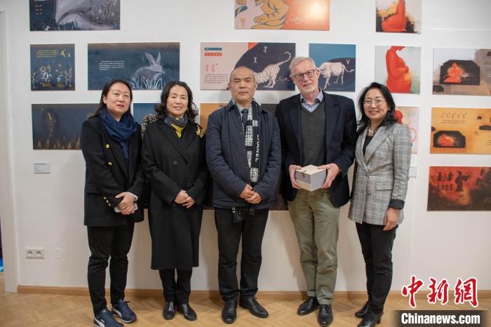 展覽開幕式現(xiàn)場。中央美術(shù)學(xué)院 供圖 紐倫堡-埃爾蘭根孔子學(xué)院德方院長徐艷博士(Dr. Yan Xu-Lackner)在歡迎詞中表示,甲骨文承載著中華民族悠久的歷史和深厚的文化底蘊(yùn)。繪本形式生動(dòng)直觀,用當(dāng)代藝術(shù)形式演繹古老的文字讓人驚艷。她希望與央美在未來加強(qiáng)合作,共同為中德文明互鑒貢獻(xiàn)力量。 中央美術(shù)學(xué)院副院長呂品晶在致辭中表示,文字是文化傳承與傳播的重要載體。在中國有成熟文字以來的幾千年里,漢字作為社會(huì)的主流文字一直延續(xù)至今。甲骨文是最早成體系的文字,現(xiàn)代漢字即是由甲骨文經(jīng)過多次大的字形演變而來。