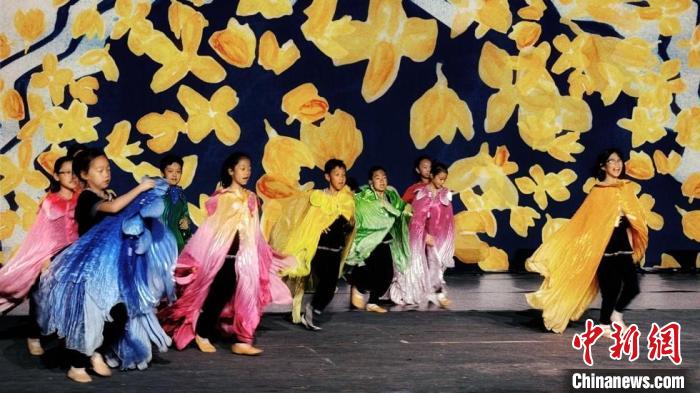 舞臺上的“百花仙子”是一個巨型偶,由孩子們操作進(jìn)行表演。不規(guī)則幕布懸于舞臺上方,層層疊疊,如山巒,如波濤;多媒體影像引入中國水墨畫風(fēng)格,又融入歐洲童話插畫般的熱烈色彩。演出中,孩子們還將首次挑戰(zhàn)使用高蹺進(jìn)行表演,經(jīng)過專業(yè)培訓(xùn)并定制專屬高蹺之后,小演員們現(xiàn)在已經(jīng)熟練掌握高蹺技巧,自如前進(jìn)后退,并能自己完成穿戴。