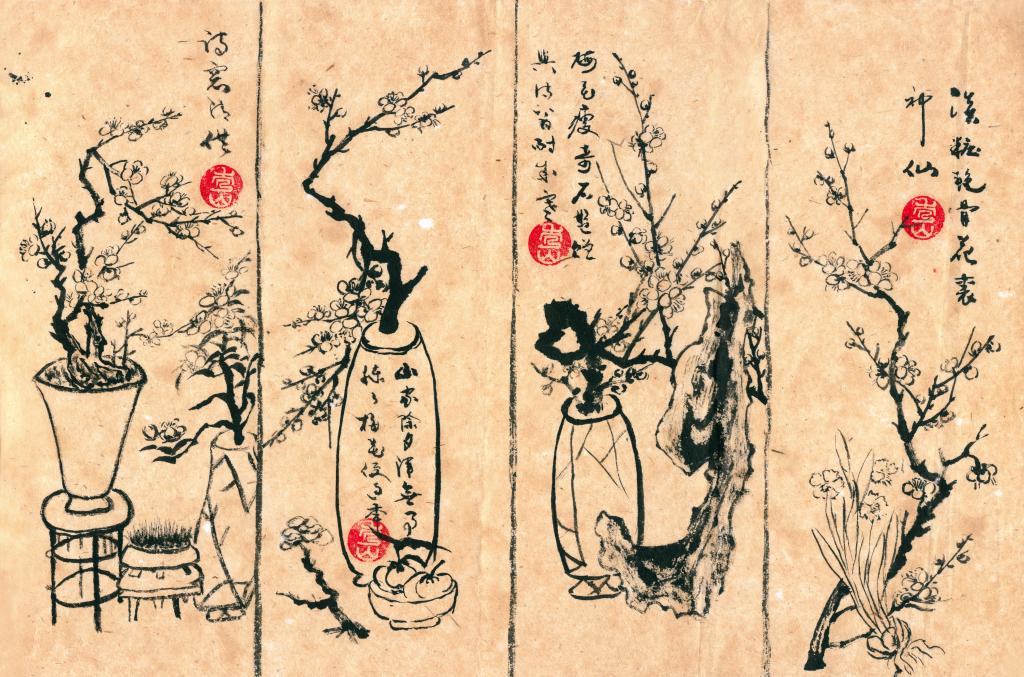 明代文震亨在其《長物志》中有一段評述梅的文字:“幽人花伴,梅實專房。取苔護蘚封,枝稍古者,移植石巖或庭際,最古。另種數(shù)畝,花時坐臥其中,令神骨俱清,綠蕚更勝,紅梅差俗;更有虬枝屈曲,置盆盎中者,極竒。蠟梅磬口為上,荷花次之,九英最下,寒月庭際,亦不可無?!?/p>