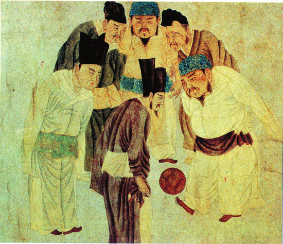 足球在中國(guó)古代被稱為“蹴鞠”,又名“蹋鞠”,“蹴”“蹋”意為踢,“鞠”即球,連在一起便是踢球之意。蹴鞠相傳是黃帝發(fā)明的軍事訓(xùn)練項(xiàng)目,西漢劉向《別錄》有言,“蹴鞠,黃帝作,蓋因娛戲以練武士”,通過踢球鍛煉士兵腿部力量??脊艑W(xué)家推測(cè),黃帝時(shí)期的足球極有可能是石球。黃河流域山西、陜西、河南的新石器時(shí)代遺址中,出土過很多磨制光滑的石球,一定程度上印證了黃帝軍隊(duì)踢石球的推測(cè)。