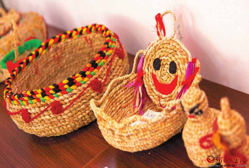 康家會首屆文化節(jié)展出的玉米秸稈編織工藝品 范亮后 攝