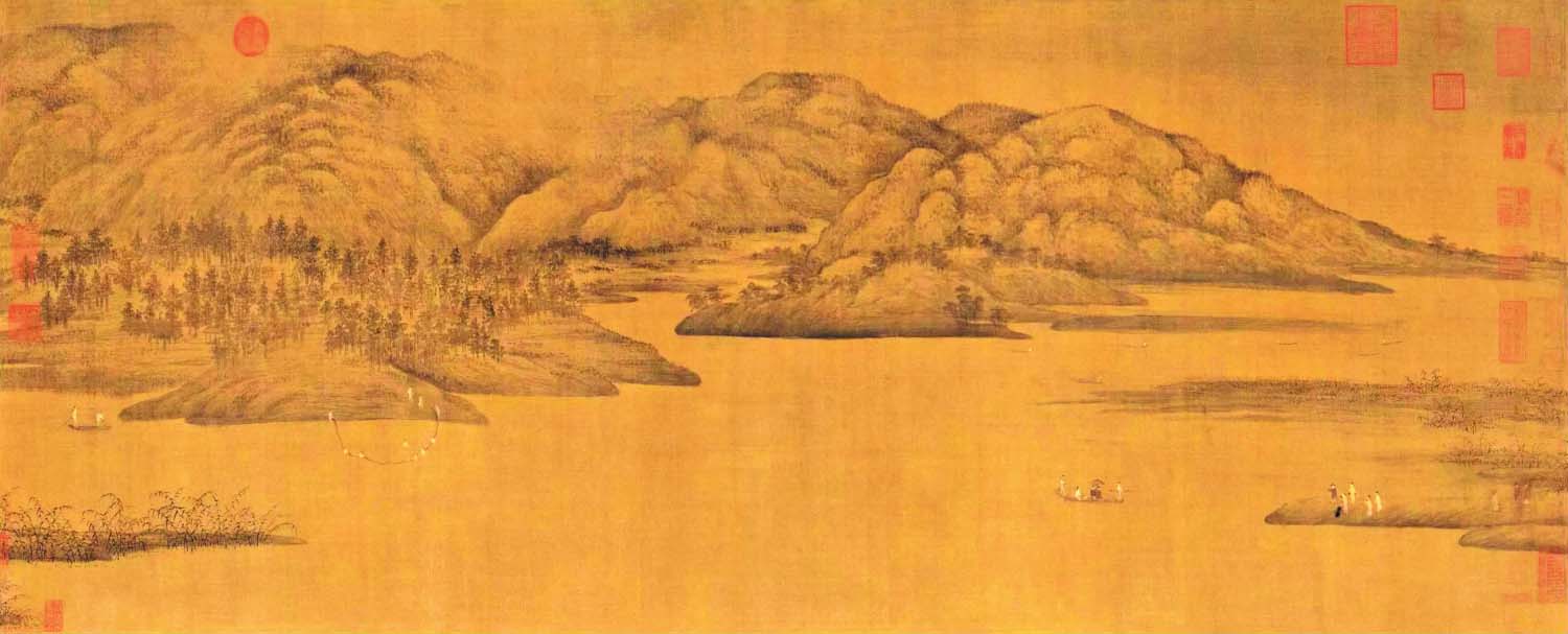 南方畫派又稱“江南畫派”,多是描繪江南山水風光,以平淡天真的洲渚峰巒為畫面主體,淡墨輕嵐,煙云籠罩,因此頻繁采用適宜表現(xiàn)土質(zhì)山巒的“披麻皴”。開創(chuàng)者董源、巨然也是師徒關(guān)系,畫史并稱“董巨”。董源的山水畫多以淡墨描寫江南明麗的風光,所謂“平淡天真”“一片江南也”,大量運用繁密的點子,稱“落茄點”,作品有《瀟湘圖》《夏山圖》等。