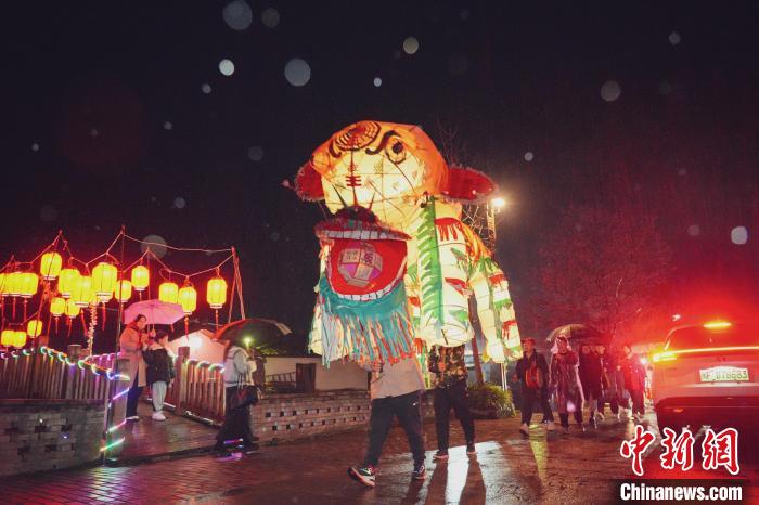 中新網(wǎng)福建龍巖2月7日電 (章宸睿 方晨穎)2月6日晚,福建省龍巖市新羅區(qū)萬安鎮(zhèn)竹貫村再次迎來盛大的花燈巡游活動。這項充滿歷史韻味的傳統(tǒng)民俗活動在古村中熱鬧上演,吸引了眾多游客和當(dāng)?shù)鼐用窆哺耙粓鰟e開生面的花燈之約。