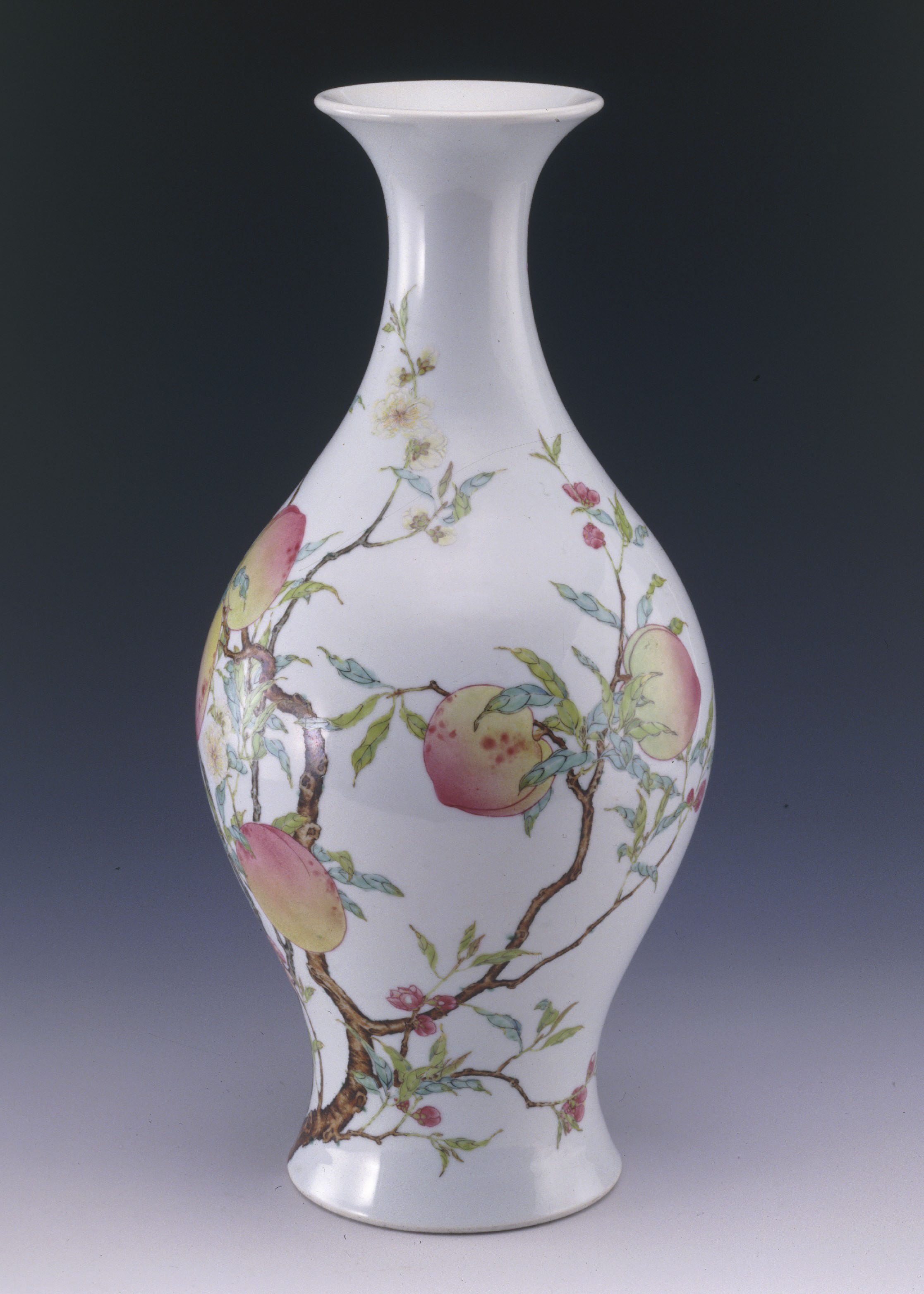 清雍正粉彩蝠桃紋橄欖瓶。圖源上海博物館官網(wǎng)