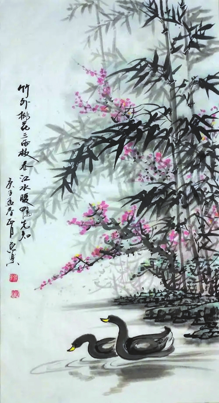 數(shù)字點染,精妙難言。古詩中常用數(shù)字實寫事物,前呼后應(yīng)形成點染。蘇軾《惠崇春江晚景》中寫“竹外桃花三兩枝,春江水暖鴨先知”,先以“三兩枝”具體描寫桃花零星開放的實景,渲染初春的環(huán)境氣氛,再以“春江水暖鴨先知”點明題旨。“三兩枝”不多不少恰到好處,點出初春的景物特征——少則春寒料峭,過于冷寂,多則春意盎然,稍嫌熱鬧,都無法與后文“春江水暖鴨先知”對季候變化的感悟相呼應(yīng)。葉紹翁的《游園不值》云“春色滿園關(guān)不住,一枝紅杏出墻來”,先點出“春色滿園”的主旨,再以“一枝紅杏”具體渲染春天壓抑不住的蓬勃生機,以及作者游園不成忽見“春色”破墻溢出的驚喜。這個“一”是其余數(shù)字替代不了的,數(shù)字點染,準確精當(dāng),妙不可言。