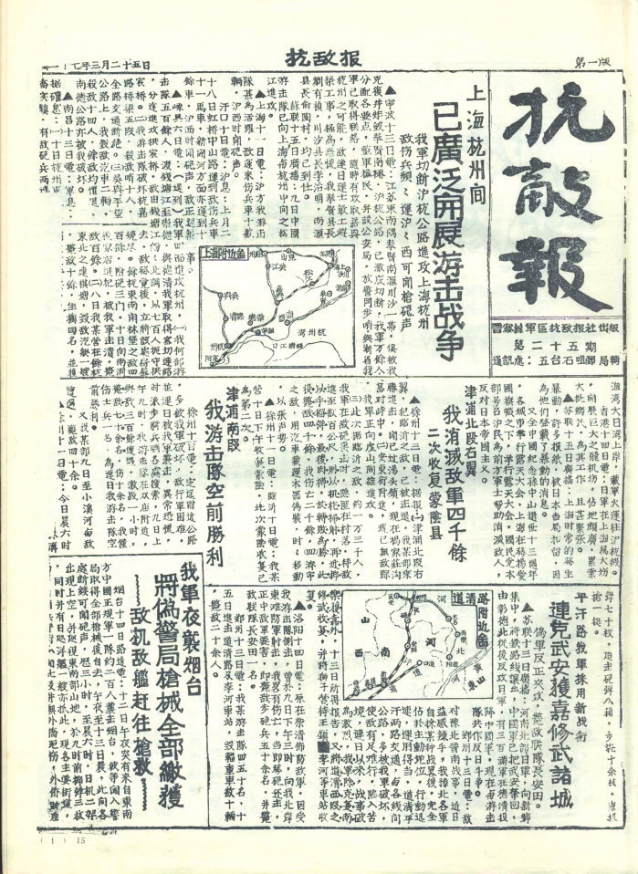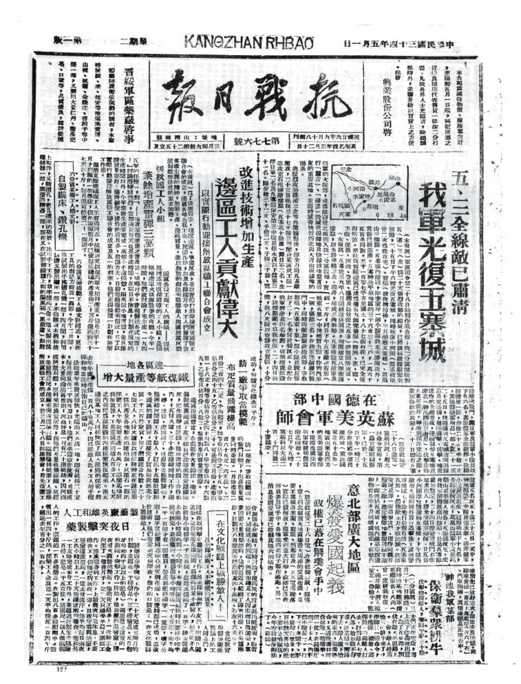 抗戰(zhàn)時期,忻州既是晉察冀、晉綏兩大根據(jù)地的中心腹地,也是抗戰(zhàn)初期全面抗敵的主戰(zhàn)場。忻州以其地理咽喉、戰(zhàn)役要沖、根據(jù)地核心和人民戰(zhàn)爭典范的多重角色,成為抗日戰(zhàn)爭中抵御日軍侵略、堅(jiān)持?jǐn)澈蠖窢幍膽?zhàn)略支點(diǎn)之一。其歷史貢獻(xiàn)不僅體現(xiàn)在軍事上,更彰顯了中華民族不屈不撓的抗戰(zhàn)精神。隨著八路軍平型關(guān)大捷、雁門關(guān)伏擊戰(zhàn)、夜襲陽明堡飛機(jī)場等戰(zhàn)役勝利,1937年11月7日晉察冀軍區(qū)在五臺成立。12月11日,《抗敵報(bào)》誕生。1940年11月,《抗敵報(bào)》改名為《晉察冀日報(bào)》,鄧拓任報(bào)社主任?!犊箶硤?bào)》最初在五臺石嘴村石印,后改鉛印。1938年1月,晉察冀邊區(qū)行政委員會在河北阜平成立,兩月后,邊區(qū)行政委員會遷駐五臺射虎川臺麓寺,報(bào)社、印刷廠分駐?;垅?、蛤蟆石古佛寺。1940年9月18日,晉綏分局機(jī)關(guān)報(bào)《抗戰(zhàn)日報(bào)》,伴隨著隆隆炮火聲,在距離忻州不遠(yuǎn)的興縣艱難創(chuàng)刊。自此,那些戰(zhàn)地記者、通訊員甚或普通民眾,有名的,無名的,以個人名義,以集體名義,在極其艱苦的條件下,用滾燙筆尖秉筆直書,為我們珍存了那些發(fā)生在忻州大地上前仆后繼、可歌可泣的抗戰(zhàn)故事,也讓今天的人們一旦捧讀就會熱血沸騰。