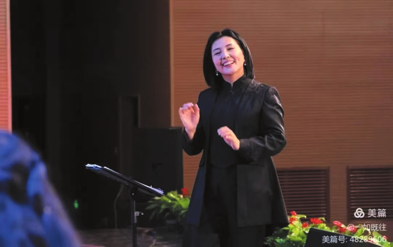 趙桂珍老師身著正裝,目光灼灼,舉手投足間盡顯專業(yè)風(fēng)范。抬手示意預(yù)備,她的動作行云流水、起收自如,每一個指揮手勢、每一種情緒表達(dá)都極具感染力。成員們層次豐富的和聲如溪流匯聚,奔涌向前,從《九兒》的如泣如訴到《壯美延安》的恢宏壯闊,深情的余音未散,鏗鏘的旋律已奔涌而至。隨著最后一個音符落下,臺下掌聲久久不息。