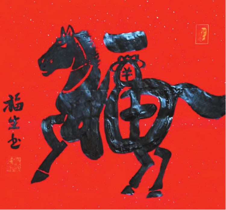 合體福字自古流傳,然民間之作多流于圖形化,失卻書法筆墨;文人之作多拘于字形拆解,難接地氣,難成氣象。王福生則在福字創(chuàng)作上實(shí)現(xiàn)了守正與超越:守書法之正,中鋒行筆,遵循法度,福字點(diǎn)畫線條皆具筆墨韻味,先立書法之本;創(chuàng)福藝之新,融民俗、親情、生肖于一體,打破雅俗界限,讓民間福文化與文人書法藝術(shù)完美融合,讓福字合體創(chuàng)作真正登上藝術(shù)殿堂,為當(dāng)代福字書法創(chuàng)新開辟了一條可鑒之路。