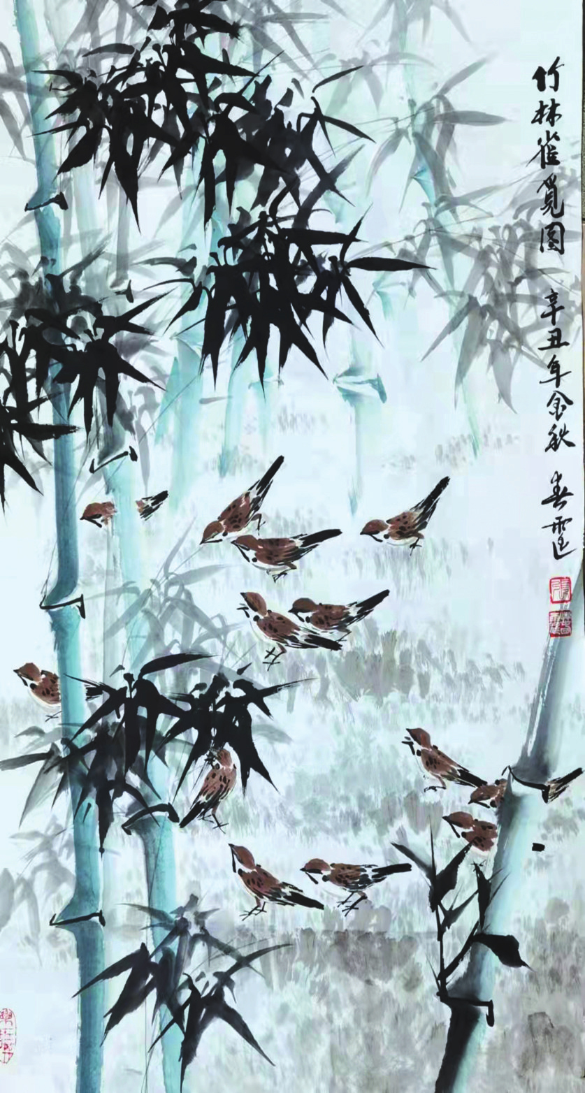 竹林雀覓圖