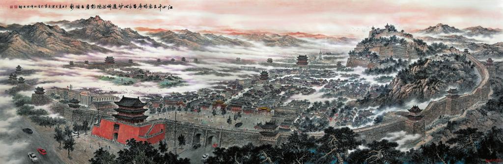 在堅(jiān)持不懈的學(xué)習(xí)和創(chuàng)作過程中,殷渭凌逐漸意識到,書畫藝術(shù)有其自身規(guī)律,并不存在固定模式,對于一個(gè)書畫家來說,確定個(gè)人藝術(shù)走向非常重要,想要表現(xiàn)的主題、內(nèi)容、情感最終會(huì)決定創(chuàng)作本身的價(jià)值。也正是清楚了這一點(diǎn),殷渭凌將自己的創(chuàng)作素材鎖定在熟悉和熱愛的故土上。他從家鄉(xiāng)的自然造化中選取創(chuàng)作對象,提煉感情和思想,然后加以調(diào)整、升華,最終呈現(xiàn)給觀者,讓大家看到了獨(dú)具韻味的黃河、太行、長城、古鎮(zhèn)、雄關(guān)、窯洞、高原、古剎、佛塔等。