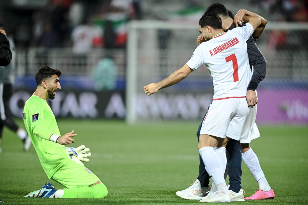 1月31日,伊朗隊守門員貝蘭萬徳(左)在賽后慶祝。新華社記者 江漢 攝