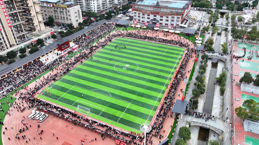 2月3日,觀眾在“村超”賽場(chǎng)等待活動(dòng)開始(無(wú)人機(jī)照片)。新華社記者 劉續(xù) 攝