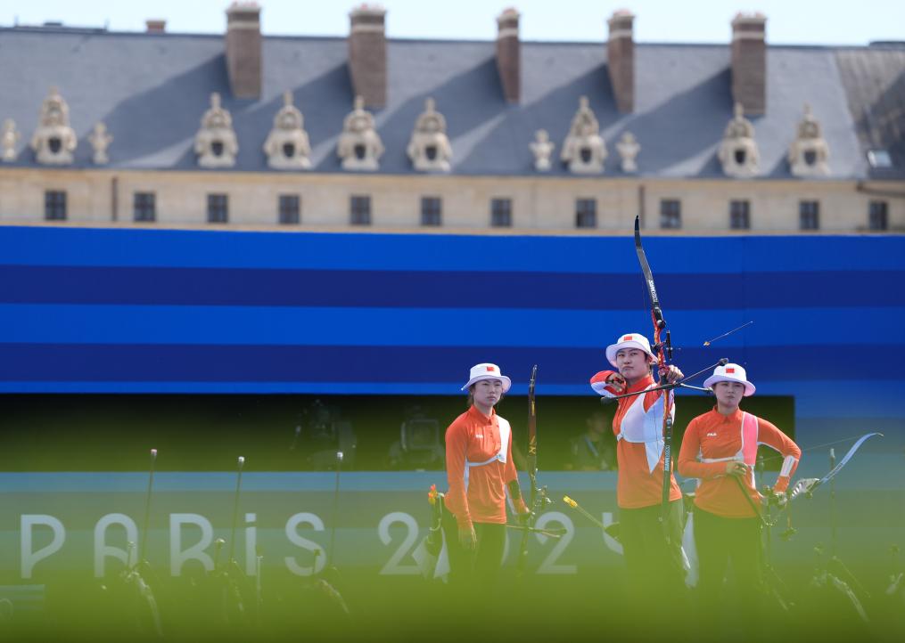巴黎奧運會射箭女子團體比賽28日在榮軍院進行。中國隊在四分之一決賽、半決賽中分別戰(zhàn)勝印度尼西亞隊和墨西哥隊,與先后戰(zhàn)勝中國臺北、荷蘭隊的韓國隊會師決賽。