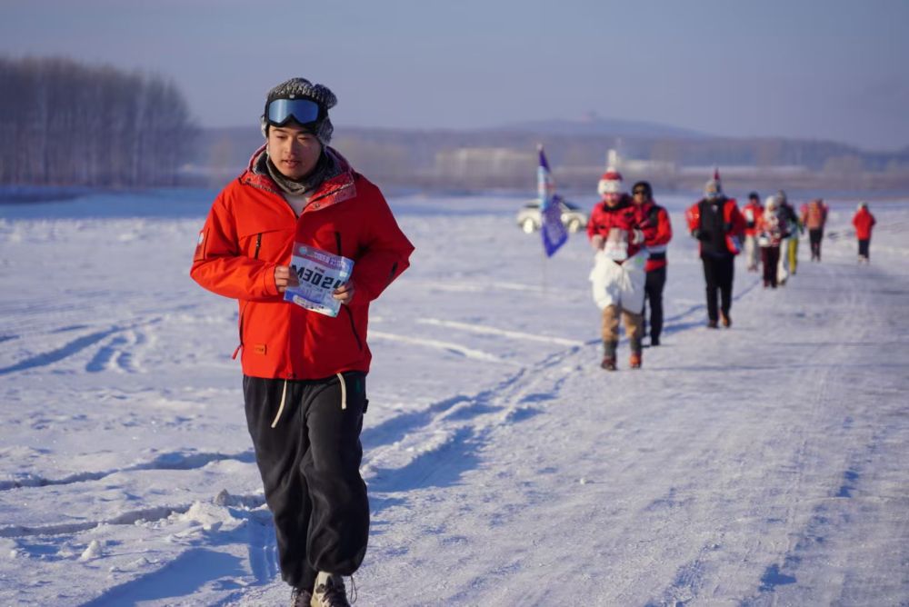 “第一次在‘華夏東極’參加冰上馬拉松,伴著朝陽跑進(jìn)新的一年,太有意義了!”來自天津的跑步愛好者劉海艷說。