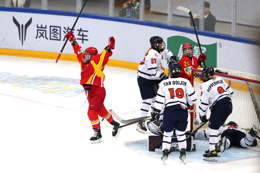 比賽伊始,雙方攻勢(shì)積極。第三分鐘,荷蘭隊(duì)打出精妙配合,科拉德門前補(bǔ)射得手,冰球從中國(guó)隊(duì)門將詹佳慧腿下滑入球網(wǎng),比分變?yōu)?:1。