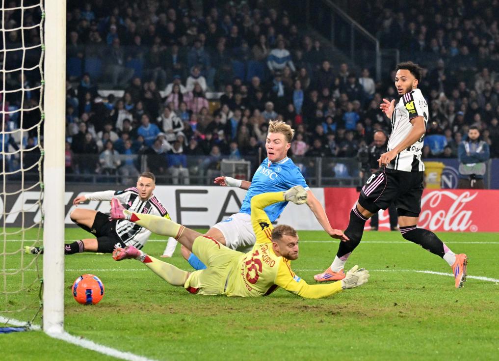 易邊再戰(zhàn),尤文利用一次進(jìn)攻小高潮將比分扳平。第59分鐘,麥肯尼和伊爾迪茲在一次反擊中相互傳遞配合,突入禁區(qū),后者推射將球打進(jìn)。第78分鐘,麥肯尼試圖解圍時(shí),為霍伊倫送出烏龍助攻,后者頭球破門,幫助那不勒斯2:1勝出。