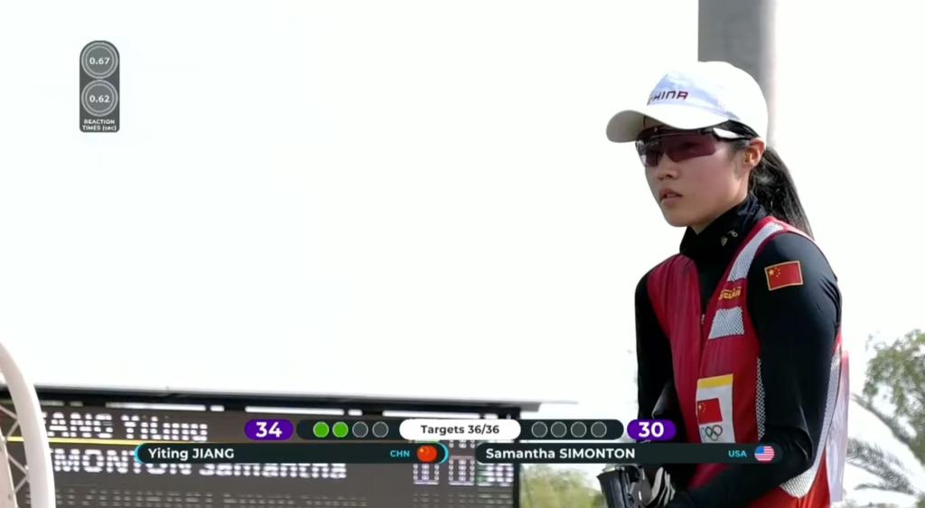決賽中,21歲的江伊婷延續(xù)火熱手感,前32靶全部命中,以領先美國選手薩曼莎·西蒙頓2中的優(yōu)勢晉級最后的決勝輪。隨后,率先出場的江伊婷4靶全中,以滿中成績提前奪冠。西蒙頓最終以34中獲得亞軍,希臘選手?,斉@たǔ@季軍。另一位晉級決賽的中國選手車雨霏以24中排名第四。