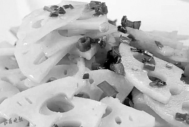 民俗流傳中,人們借助于蓮藕的特征和諧音賦予了它更多的吉祥內(nèi)容。古太原地區(qū)的傳統(tǒng)筵席“八碟八碗”中,有一款坐底大菜——涼拌蓮菜(本地人叫藕根大片)。之所以如此安排,完全就是沿用了諧音吉祥的民俗習(xí)慣?!芭骸迸c“偶”諧音,藕根大片占個(gè)“偶”,有佳偶天生的美好寓意,故而成了八大碗中必不可少的一道菜品?!吧彶恕庇种C音“連財(cái)”,意思是菜上完了,還有扯不斷、沒完沒了的財(cái)運(yùn),八碗帶財(cái)一起來。寓意如此美好,自然人人都滿意。