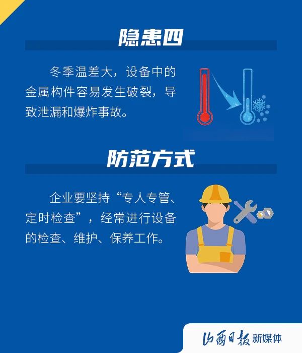 進(jìn)入冬季,氣溫下降,晝夜溫差大,冷暖變化不規(guī)律,一些事故發(fā)生概率會因為季節(jié)性因素而升高,影響企業(yè)的安全生產(chǎn),下面這些隱患需注意。