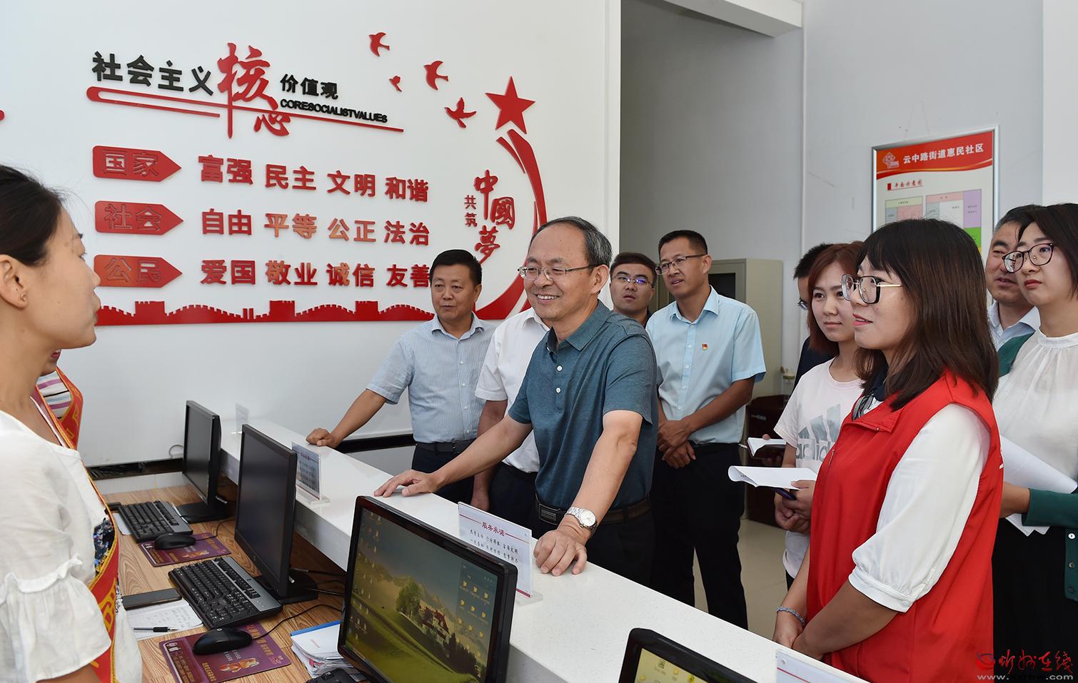 惠民社區(qū)創(chuàng)文氣氛濃厚,墻上張貼著創(chuàng)文展板,隨處可見溫馨的提示,志愿者隨時(shí)提供服務(wù)。鄭連生檢查了社區(qū)綜合文化服務(wù)中心,向工作人員詢問服務(wù)中心的功能和作用,并查看了社區(qū)創(chuàng)文資料。他強(qiáng)調(diào),要切實(shí)發(fā)揮好綜合文化服務(wù)中心在文化宣傳、黨員教育、科普教育、普法教育、市民教育、家長學(xué)校、道德講堂等方面的作用,形成制度,制定活動(dòng)計(jì)劃,按期開展活動(dòng),促進(jìn)群眾素能的不斷提升。