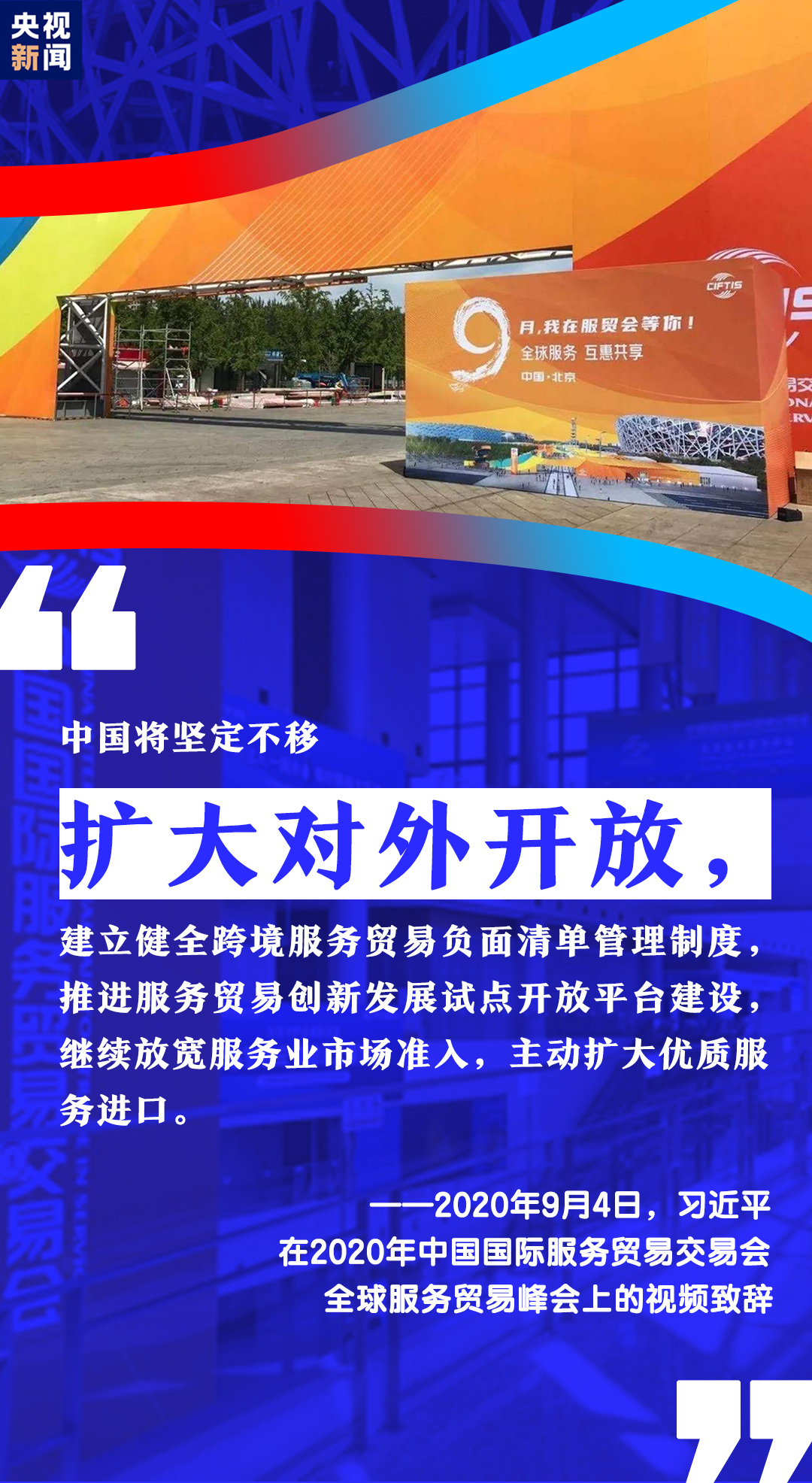 習(xí)近平表示,中國舉辦2020年中國國際服務(wù)貿(mào)易交易會,就是搭建起平臺和橋梁,讓各國人民充分展示服務(wù)貿(mào)易領(lǐng)域新發(fā)展新突破,共同享受人類社會發(fā)展進(jìn)步新技術(shù)新成果。