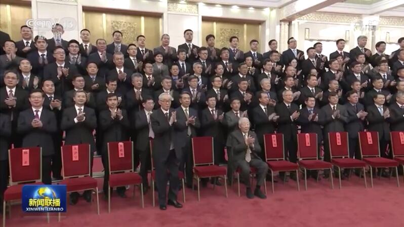 人民大會堂北大廳氣氛喜慶熱烈。上午10時許,習近平等黨和國家領(lǐng)導(dǎo)同志步入會場,向參研參試人員代表揮手致意,全場響起經(jīng)久不息的掌聲。習近平同孫家棟、欒恩杰等親切交流,并同大家合影留念。