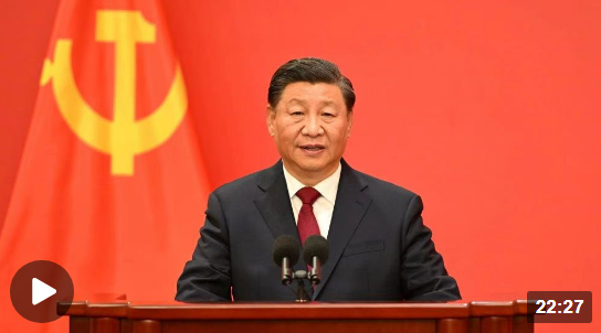 在中國共產(chǎn)黨第二十屆中央委員會(huì)第一次全體會(huì)議上當(dāng)選的中共中央總書記習(xí)近平和中共中央政治局常委李強(qiáng)、趙樂際、王滬寧、蔡奇、丁薛祥、李希,23日中午在人民大會(huì)堂同采訪中共二十大的中外記者見面。習(xí)近平發(fā)表重要講話。