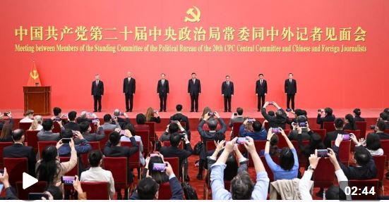10月23日,剛剛在黨的二十屆一中全會上當(dāng)選的新一屆中共中央政治局常委,在人民大會堂同采訪中共二十大的中外記者親切見面。