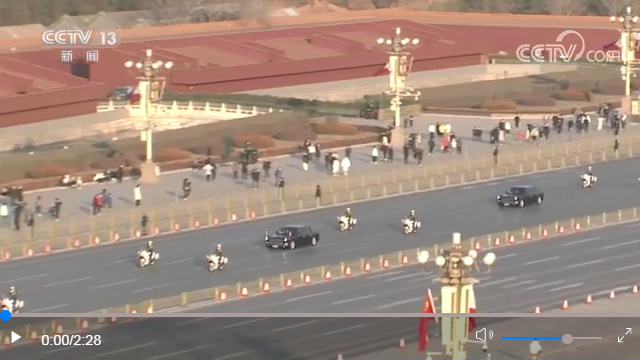 天安門廣場(chǎng)鳴放21響禮炮,禮兵列隊(duì)致敬,迎賓小號(hào)手鳴禮號(hào)。兩國(guó)元首登上檢閱臺(tái),軍樂團(tuán)奏中菲兩國(guó)國(guó)歌。馬科斯在習(xí)近平陪同下檢閱了中國(guó)人民解放軍儀仗隊(duì),并觀看分列式。