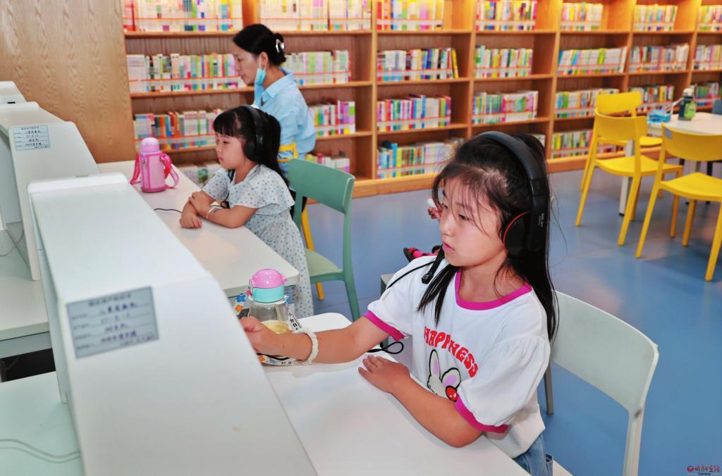 多彩暑期是孩子們博覽群書的最佳時期。7月28日,在市圖書館,小讀者們在兒童閱讀機上體驗點觸、互動學習的快樂。(