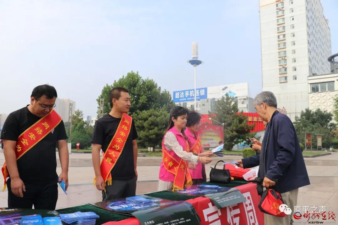 9月14日上午,原平市委宣傳部、市委網(wǎng)信辦、市公安局、市教科局、市工信局、團市委、市婦聯(lián)、中國人民銀行等單位聯(lián)合在街心廣場開展集中宣傳,向市民發(fā)放宣傳資料。同時,工作人員還走到街頭向過往群眾講解網(wǎng)絡(luò)安全基礎(chǔ)知識、個人信息保護等知識,極大地調(diào)動廣大群眾參與網(wǎng)絡(luò)安全防護活動的熱情。
