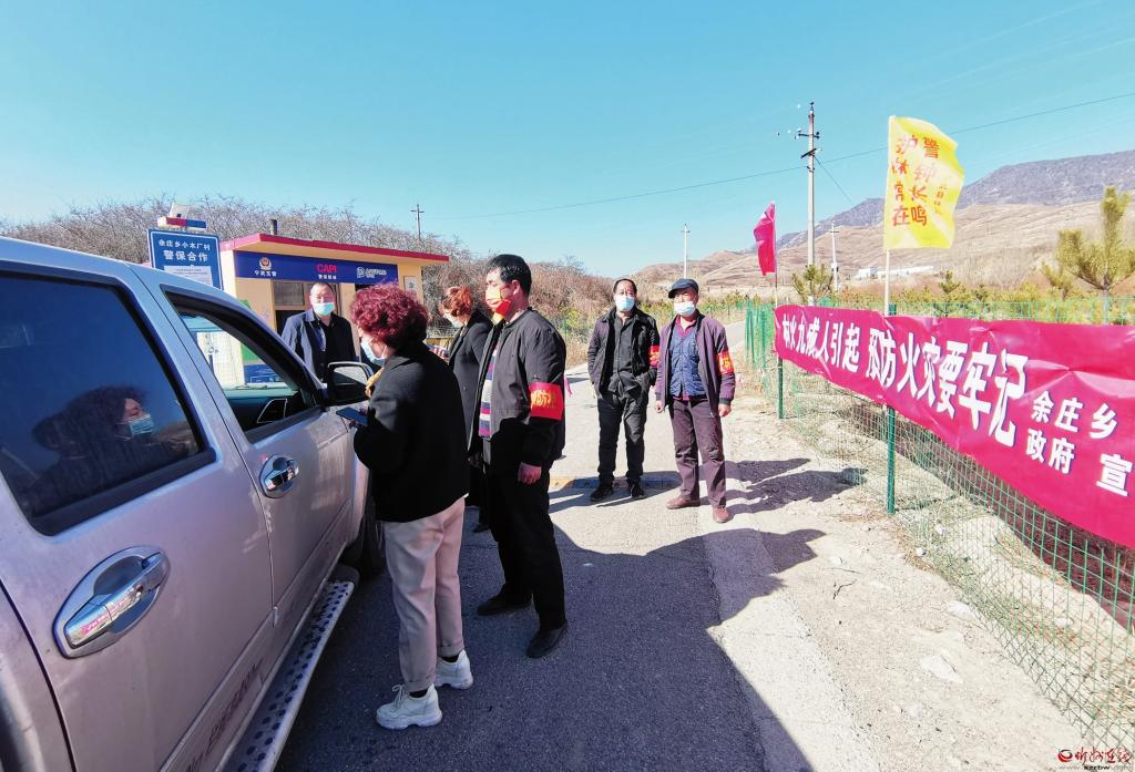 清明節(jié)期間,寧武縣及早部署,提前準(zhǔn)備,周密計(jì)劃,全面落實(shí)森林草原防滅火各項(xiàng)要求,各林場(chǎng)、鄉(xiāng)鎮(zhèn)、村“兩委”人員及護(hù)林員堅(jiān)守崗位,通過(guò)站山頭、守墳地、把路口、巡林地,嚴(yán)格火源管控,加大宣傳力度,切實(shí)做到防患于未然。圖為寧武縣余莊鄉(xiāng)小木場(chǎng)村警保合作勸導(dǎo)站嚴(yán)查進(jìn)村進(jìn)山車輛及人員。 (記者張建國(guó)攝)