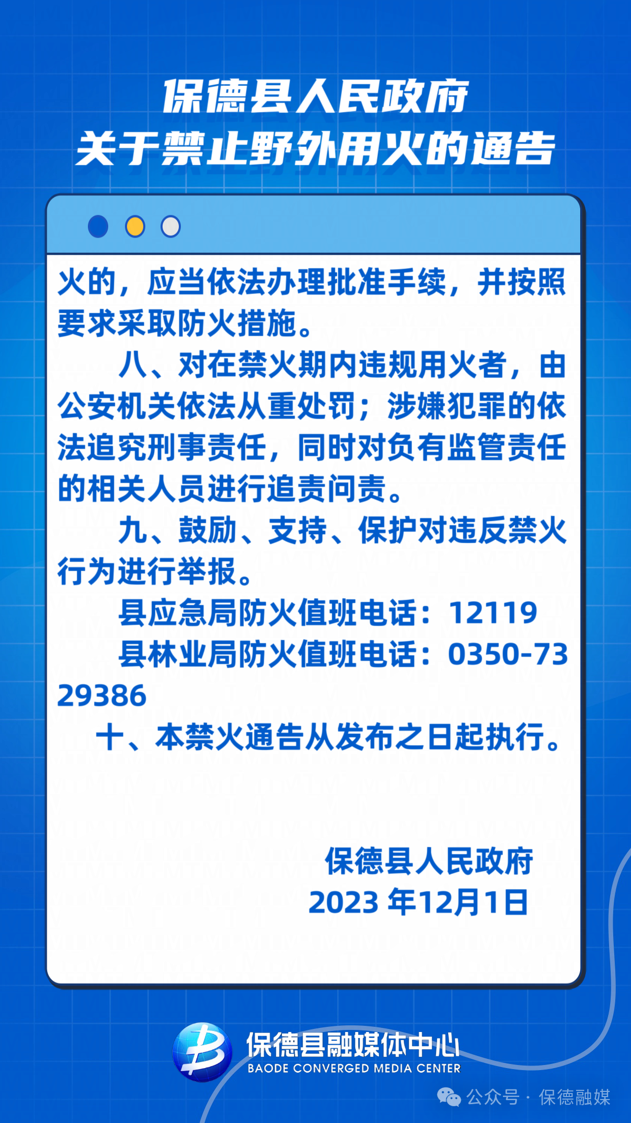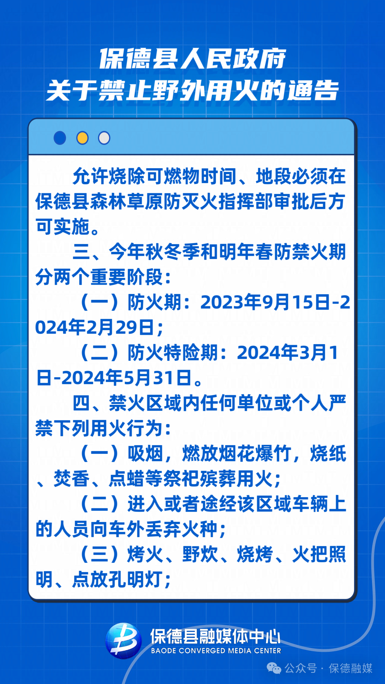 保德縣人民政府關(guān)于禁止野外用火的通告