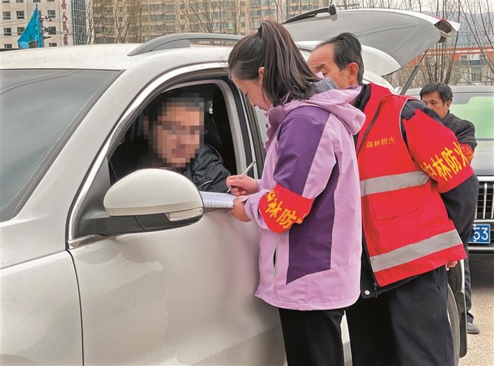 圖為鳳凰鎮(zhèn)朱家?guī)r村護(hù)林防火卡口,護(hù)林員正在登記進(jìn)山人員信息。