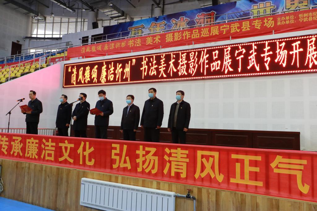 筆墨書廉潔,丹青揚(yáng)正氣。11月27日,由忻州市紀(jì)委監(jiān)委主辦、寧武縣紀(jì)委監(jiān)委承辦的“清風(fēng)雅頌·廉潔忻州”書法美術(shù)攝影作品巡展寧武縣專場在縣體育館隆重開展。寧武縣委書記任寧虎在開展儀式上講話并宣布開展??h委常委、縣紀(jì)委書記、監(jiān)委主任尹志剛主持開展儀式??h四套班子領(lǐng)導(dǎo)和其他縣處級領(lǐng)導(dǎo),各縣直單位、各鄉(xiāng)(鎮(zhèn))的主要領(lǐng)導(dǎo),全縣紀(jì)檢監(jiān)察干部,共計180余人參加儀式。
