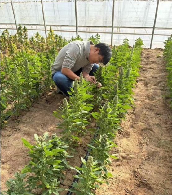 除了常規(guī)水肥管理與病蟲害防控,溫室更重要的日常工作是科研。“育種不是看一眼就能下結(jié)論,必須把每一株、每一代的變化都用數(shù)據(jù)說清楚。在藜麥生長的關(guān)鍵時期,記錄株型、穗型、抗性表現(xiàn)等數(shù)據(jù)非常重要,還要采集基因樣本用于測定與分析,為后續(xù)選擇提供依據(jù)?!闭τ谌斯とバ垭s交工作的技術(shù)總監(jiān)賀培洋說。