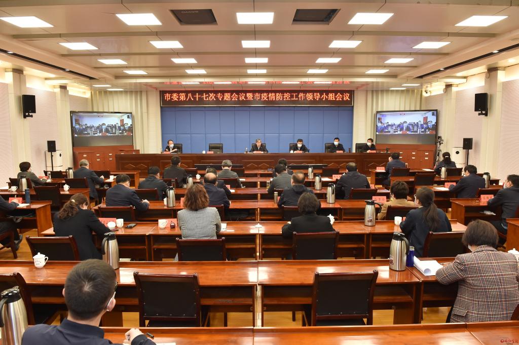 3月30日,省委第七十六次疫情防控專題會(huì)暨省疫情防控工作領(lǐng)導(dǎo)小組會(huì)議召開,市委書記朱曉東在忻州分會(huì)場(chǎng)參加并匯報(bào)我市局部疫情應(yīng)急處置情況。全省會(huì)議結(jié)束后,朱曉東立即主持召開市委第八十七次專題會(huì)議暨市疫情防控工作領(lǐng)導(dǎo)小組會(huì)議,貫徹落實(shí)全省會(huì)議精神,分析研判當(dāng)前形勢(shì),對(duì)我市疫情防控工作進(jìn)行再安排再部署。市委副書記、市長(zhǎng)李建國(guó)講話,省衛(wèi)健委副主任、省疾控中心主任馮立忠講話,市委常委、副市長(zhǎng)溫建軍等市領(lǐng)導(dǎo)出席。會(huì)上,副市長(zhǎng)、市公安局局長(zhǎng)史紅波安排交通卡口場(chǎng)站防控工作,副市長(zhǎng)崔崢嶺對(duì)常態(tài)化疫情防控和局部疫情應(yīng)急處置工作進(jìn)行安排部署。原平市委書記、代縣縣委書記分別就局部疫情應(yīng)急處置情況進(jìn)行匯報(bào)。