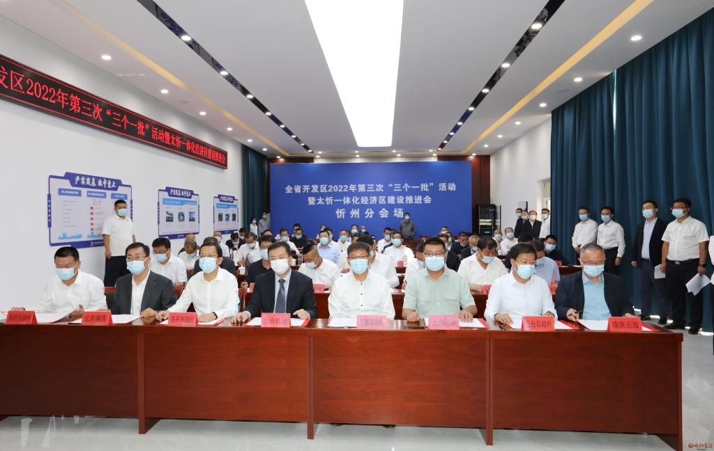 在原平經(jīng)濟(jì)技術(shù)開發(fā)區(qū)雙創(chuàng)孵化中心,與省主會(huì)場(chǎng)同步,李建國(guó)主持舉行了忻州市“簽約一批”代表項(xiàng)目集中簽約活動(dòng)。此次活動(dòng),全市開發(fā)區(qū)簽約項(xiàng)目37個(gè),總投資174億元;太忻一體化經(jīng)濟(jì)區(qū)忻州片區(qū)簽約項(xiàng)目61個(gè),總投資613億元。忻州經(jīng)濟(jì)開發(fā)區(qū)與一道新能源科技有限公司“10GW智能光伏電池生產(chǎn)基地項(xiàng)目”、原平經(jīng)濟(jì)技術(shù)開發(fā)區(qū)與掌上豐(北京)科技有限公司運(yùn)營(yíng)中心“人工智能醫(yī)生項(xiàng)目”、繁峙經(jīng)濟(jì)技術(shù)開發(fā)區(qū)與道威儲(chǔ)能技術(shù)有限公司“200MW/400MWh共享儲(chǔ)能電站”、定襄經(jīng)濟(jì)技術(shù)開發(fā)區(qū)與杭州軍榮鴻管道配件有限公司“年產(chǎn)3萬噸精密鍛件智能化生產(chǎn)線建設(shè)項(xiàng)目”、岢嵐經(jīng)濟(jì)技術(shù)開發(fā)區(qū)與北京夏初科技集團(tuán)“鋰電池負(fù)極材料項(xiàng)目”、靜樂現(xiàn)代農(nóng)業(yè)產(chǎn)業(yè)示范區(qū)與山西關(guān)注文化傳媒有限公司“靜樂生活中醫(yī)康養(yǎng)小鎮(zhèn)建設(shè)項(xiàng)目”、神池現(xiàn)代農(nóng)業(yè)產(chǎn)業(yè)示范區(qū)與天牧生物科技有限公司“有機(jī)生態(tài)牧場(chǎng)項(xiàng)目”、五臺(tái)現(xiàn)代農(nóng)業(yè)產(chǎn)業(yè)示范區(qū)與山西晉博優(yōu)品科技推廣有限公司“網(wǎng)絡(luò)直播銷售基地項(xiàng)目”、忻府區(qū)與北京盛蓮文化旅游發(fā)展有限公司“太忻奇村國(guó)際溫泉康養(yǎng)旅游度假區(qū)項(xiàng)目”、原平市與協(xié)合能源科技有限公司“協(xié)和200MW/400MWh(一期100MW/200MWh)共享儲(chǔ)能項(xiàng)目”、定襄縣與上海恩鋼工貿(mào)有限公司“年產(chǎn)2萬噸鍛件法蘭生產(chǎn)線項(xiàng)目”、五臺(tái)縣與南京云海特種金屬有限公司“年產(chǎn)10萬噸高性能鎂基輕合金及深加工項(xiàng)目”、代縣與國(guó)興絲路(北京)農(nóng)業(yè)科技有限公司“10萬KL高端有機(jī)黃酒產(chǎn)業(yè)園建設(shè)項(xiàng)目”、代縣與山西雁磊新型材料科技有限公司“年產(chǎn)10萬噸石榴砂項(xiàng)目”、繁峙縣與大昌煤炭物流有限公司“大昌煤炭物流園智能化儲(chǔ)煤基地建設(shè)項(xiàng)目”、五臺(tái)山風(fēng)景名勝區(qū)與中國(guó)鐵建昆侖投資集團(tuán)有限公司“楊柏峪交通樞紐及旅游服務(wù)基地項(xiàng)目”等16個(gè)代表項(xiàng)目分兩個(gè)批次進(jìn)行了簽約。