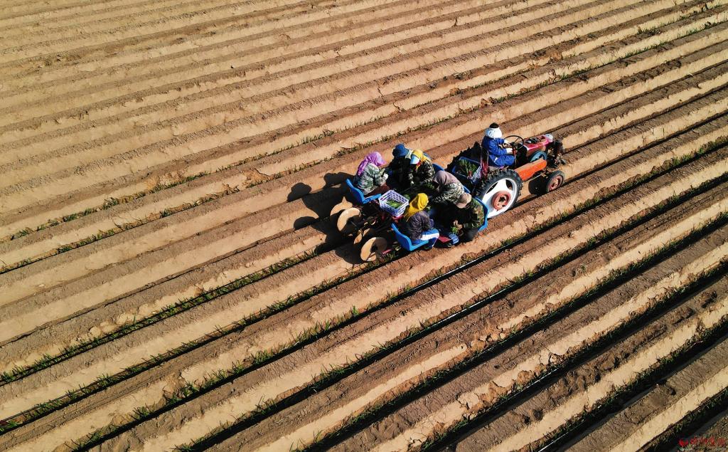 3月30日,在忻府區(qū)解原村的農(nóng)田里,村民利用晴好天氣搶種大蔥,機(jī)械人工齊上陣,田間地頭一片忙碌景象。(