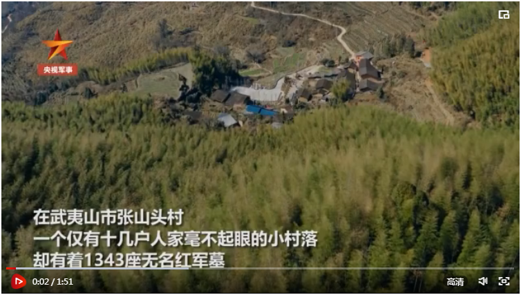 福建張山頭村竹林中,有1343座無(wú)名紅軍墓,每座墓僅一根紅飄帶、一個(gè)編號(hào)做標(biāo)記。革命戰(zhàn)爭(zhēng)年代,這里曾是閩北蘇區(qū)紅色首府所在地的中心地帶,不少傷病員在村里的紅軍中醫(yī)院療養(yǎng)。敵人“圍剿”,藥品不足,斷米斷菜,很多將士犧牲了,村民就把他們?cè)嵩卺t(yī)院后方,3塊青磚做墓門(mén)。為保護(hù)家人,這些紅軍沒(méi)有留下名字……(胡渝 任超 張馨尹)