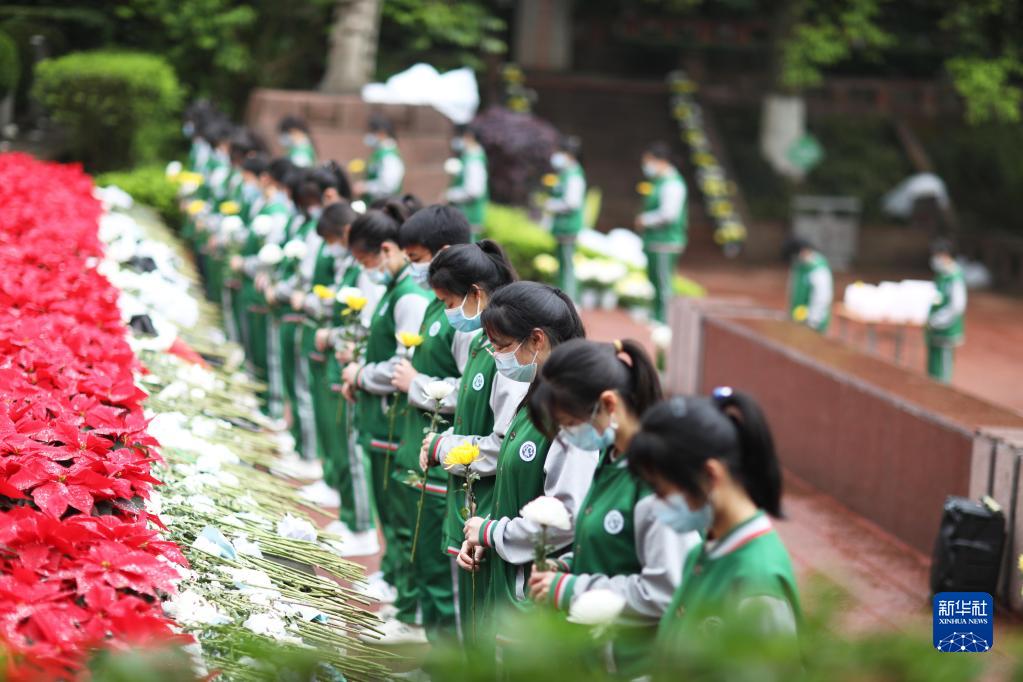 4月4日,在貴州省赤水市紅軍烈士陵園,赤水一中師生祭奠紅軍烈士。 清明時節(jié),各地干部群眾通過形式多樣的活動,銘記歷史、緬懷英烈、寄托哀思。 新華社發(fā)(楊洋攝)