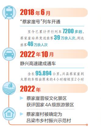 六月的晉綏大地,群山蔥蘢,鳥鳴嚶嚶。元寶山上,千畝經(jīng)濟(jì)林果實累累,蔚汾河畔,綠色長廊帶花草繁茂。在青山綠水的環(huán)繞下,紅色蔡家崖一派生機(jī)。 這里曾是晉綏邊區(qū)首府所在地,是中共中央晉綏分局和八路軍120師師部駐地。1948年,毛澤東等黨中央領(lǐng)導(dǎo)同志經(jīng)由這里前往西柏坡,并在此地發(fā)表了《在晉綏干部會議上的講話》和《對晉綏日報編輯人員的談話》兩篇對中國革命具有重要指導(dǎo)意義的講話。 2017年6月21日,習(xí)近平總書記來到這里,向晉綏邊區(qū)革命烈士敬獻(xiàn)花籃,瞻仰晉綏邊區(qū)革命紀(jì)念館,參觀晉綏邊區(qū)政府、晉綏軍區(qū)司令部舊址,并勉勵大家要把呂梁精神用在當(dāng)今時代,繼續(xù)為老百姓過上幸福生活、為中華民族偉大復(fù)興而奮斗。 6年過去,蔡家崖又有了新的變化。 老區(qū)展新顏 清晨陽光溫暖,微風(fēng)陣陣。在晉綏邊區(qū)革命紀(jì)念館西側(cè)的公園步道上,62歲的村民田艷芳正在晨練?!霸圻@公園一點不比城里的差,縣城里的公園好多都沒有專門的塑膠跑道?!碧锲G芳指著地上的步道一個勁地夸贊。 “我和老伴每天早上來公園鍛煉身體,晚上到村里的活動室彈琴唱歌,或者到村里的小廣場上跳廣場舞?!碧锲G芳的老伴張喜唐接過話茬。今年61歲的張喜唐是一名退休干部,因為老伴患有哮喘,子女們都希望退休后他們能在城里生活,方便照顧。但在村里生活了一輩子的田艷芳還是不習(xí)慣城里的生活?!澳憧催@村里的環(huán)境多好,綠水青山,空氣新鮮,我回到村里基本不犯病。而且我們村現(xiàn)在已經(jīng)納入了新城規(guī)劃,剛建起來的縣醫(yī)院離我們這里只有不到2公里,出門坐上免費的公交車很快就能過去?!碧锲G芳細(xì)說著村里的變化。 “你站在這兒往上看,村里多么整齊漂亮?,F(xiàn)在的蔡家崖村,處處是景,蔚汾河水清凌凌的,村民們的房屋整齊排列,北山上到處都是綠油油的樹,村里的街上有專門的清潔工打掃衛(wèi)生,退休后回村生活的這個決定實在太正確了?!睆埾蔡频恼Z氣中帶著幾分驕傲。 “一會兒你跟著我們?nèi)ゼ依锟纯础,F(xiàn)在家里都用上了自來水、通了天然氣、用上了馬桶、安裝了浴霸,還接了城里的大暖。”田艷芳熱情地發(fā)出了邀請。走出小公園,繞到紀(jì)念館后邊的紅色一條街上,放眼望去清晨的陽光照射在街道兩旁的房屋上,遠(yuǎn)處山間的樹林里傳來陣陣鳥鳴,田艷芳和老伴在前邊慢慢地走著,腳下青石板鋪就的道路延伸到遠(yuǎn)方,蔡家崖人迎來了充滿希望的新一天。 鋪就幸福路 下午4時,蔡家崖火車站,安檢員正在引導(dǎo)著準(zhǔn)備進(jìn)站的旅客排隊過安檢。候車廳里,過完安檢的旅客們則坐在椅子上一邊刷手機(jī),一邊暢快地聊天、候車。 “這次來蔡家崖感覺太好了。坐著火車到村里,一路上慢慢悠悠可以仔細(xì)欣賞鐵路兩邊的風(fēng)景,要的就是這個慢下來的感覺。”來自太原的游客王先生興奮地說。王先生是一位旅行愛好者,到過國內(nèi)很多地方旅行?!斑@地方山清水秀,而且很有教育意義,一上火車就能感受到濃濃的老區(qū)氛圍?!蓖跸壬Q贊道。 和王先生一樣,近年來,很多游客選擇乘坐火車到蔡家崖旅行,而蔡家崖的村民們很多會乘坐火車到外地上學(xué)和工作。據(jù)蔡家崖火車站值班站長蔣偉介紹,自2018年太原至蔡家崖的列車開通以來,已累計開行7200多趟,該站發(fā)送旅客39萬余人次,到達(dá)旅客46萬余人次。 “這條火車線路不光方便了沿線群眾的出行,更助推了蔡家崖的經(jīng)濟(jì)發(fā)展?!笔Y偉說,“蔡家崖號”的開通不僅為蔡家崖送來了大批的游客,還使得當(dāng)?shù)氐耐撂禺a(chǎn)品紅棗、杏、核桃等搭乘列車銷往全國各地。 去年10月,靜興高速公路通車運(yùn)行,蔡家崖又多了一條通往外界的致富路。“這幾年,我們村的交通狀況大大改善,有了火車,通了高速,今年10月,北山互通路就能通車,我們的好日子還在后頭哩?!贝迕駵睾钯嚹樕涎笠缰腋?。 逐夢新時代 晚上9時30分,蔡家崖村村委會旁邊的農(nóng)家樂飯店漸漸安靜下來。老板溫雪敏和妻子在吧臺前盤點著一天的收支?!敖裉焓杖脒€不錯,人漸漸多起來了,我們的日子會越來越好的?!睖匮┟粽f著嘴角揚(yáng)起了笑意。 這位80后農(nóng)家樂老板,曾在太原打工,開過店,后來學(xué)了廚師,但是每年賺的錢除了吃喝、租房子,只能勉強(qiáng)維持家里的基本生活。2020年,父親對他說村里的旅游發(fā)展得不錯,于是,他辭掉了太原的工作回村里開起了農(nóng)家樂?!拔覀兇瀣F(xiàn)在已經(jīng)規(guī)劃到了新城范圍內(nèi),縣醫(yī)院、120師學(xué)校、晉綏干部學(xué)院等都已經(jīng)建到了我們村旁邊,以后還愁沒有客源么。”溫雪敏滿懷信心地說。 像溫雪敏一樣回到家鄉(xiāng)尋找創(chuàng)業(yè)機(jī)會的年輕人越來越多。新并入蔡家崖村的木蘭崗村村小組組長張建國以前在朔州經(jīng)營廣告公司,看到蔡家崖紅色文化旅游的發(fā)展前景后,2017年返鄉(xiāng)創(chuàng)業(yè)?;氐酱謇锖?,他先后建了游樂場、垂釣園和采摘園,還引進(jìn)了酒廠和養(yǎng)牛場。“我非??春梦覀冞@里的發(fā)展前景,蔡家崖全國知名,我們這里山清水秀,將來肯定會有很大的發(fā)展空間。”張建國的語氣非常堅定。 “環(huán)境好了,交通好了,教育、醫(yī)