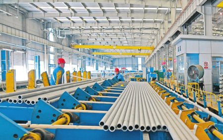 巨大的生產(chǎn)車間內(nèi),機器轟鳴,一根根坯料經(jīng)過穿孔、酸洗、拋光、冷軋等近40道工序,變成锃亮堅固的不銹鋼管,發(fā)往國內(nèi)外企業(yè),成為電站、鐵路、新能源、油氣開采等行業(yè)的重要材料。在山西太鋼不銹鋼鋼管有限公司,一系列特色管材產(chǎn)品實現(xiàn)了在重大裝備上的突破性應用,提高了太鋼鋼管產(chǎn)品的美譽度和競爭力。