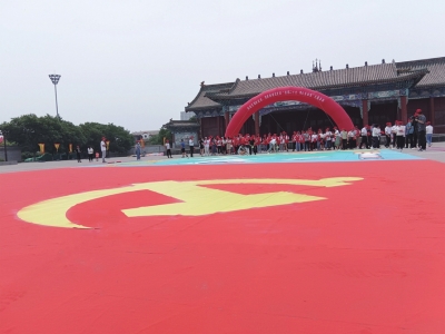 7月2日,我市十幾位沙畫(huà)藝術(shù)工作者,在崇福寺廣場(chǎng)用沙畫(huà)藝術(shù)的方式向黨的二十大獻(xiàn)禮。一丟、一刮、一勾、一點(diǎn),旋出他們青春的足跡,畫(huà)出對(duì)黨和祖國(guó)的溫馨祝福。他們用了4個(gè)多小時(shí)、耗費(fèi)了300多公斤細(xì)沙,繪出了黨旗的巨幅沙畫(huà),“喜迎二十大”六個(gè)大字相襯下方,黃色的華表、雄偉壯麗的長(zhǎng)城、遨游的飛行員、憨憨的冰墩墩更是活靈活現(xiàn)、躍然眼前。